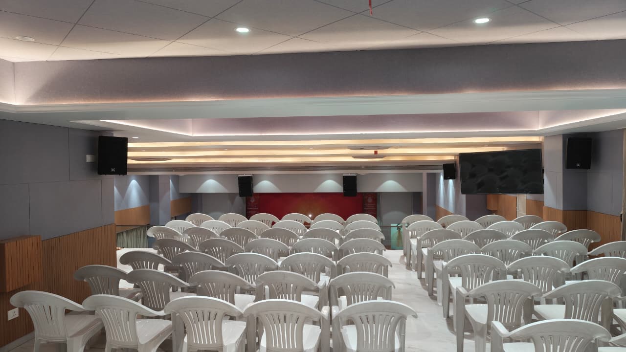 The Brahmakumari Meditation Ashram in Vasai, Maharashtra, required a high-quality audio system that could deliver crystal-clear sound while maintaining the calm and peaceful atmosphere essential for meditation and spiritual discourses. The objective was to ensure uniform sound coverage, speech intelligibility, and a soothing listening experience for all attendees within the space.