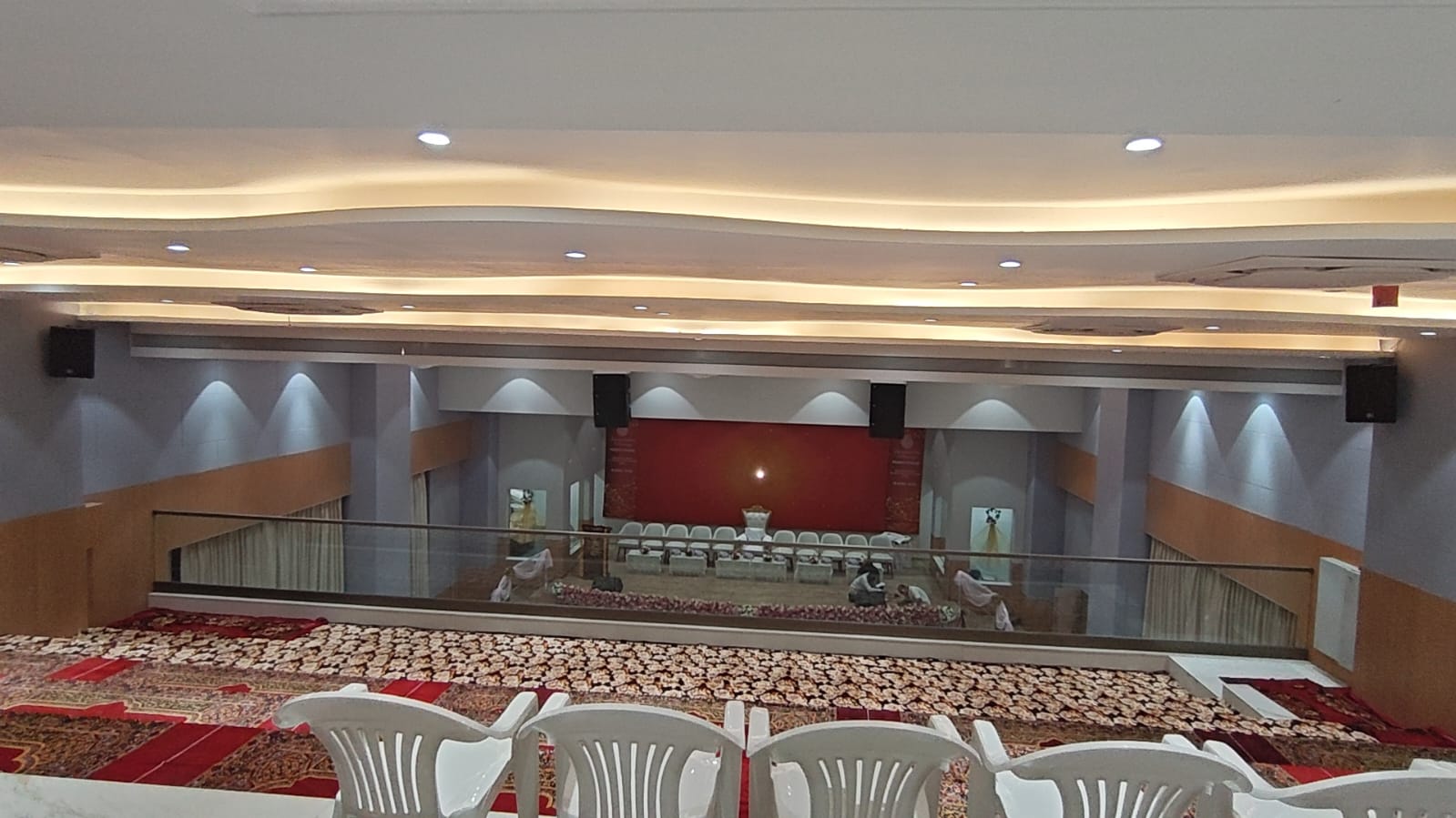 To meet these requirements, a robust Beta3 audio setup was installed, featuring 6 units of VR112HP high-performance line array speakers for precise and even sound distribution across the hall. Supporting this system are 6 N10 speakers, strategically placed to provide consistent fill and surround coverage, ensuring clarity in every corner. For balanced low-frequency reinforcement, 2 EJ218 dual 18” subwoofers were integrated to deliver deep yet controlled bass without disturbing the serene environment. The entire system is powered by 2 units of DT2000 and 1 unit of DT4000 Class D amplifiers, offering efficient power delivery, high output, and minimal distortion for reliable performance.